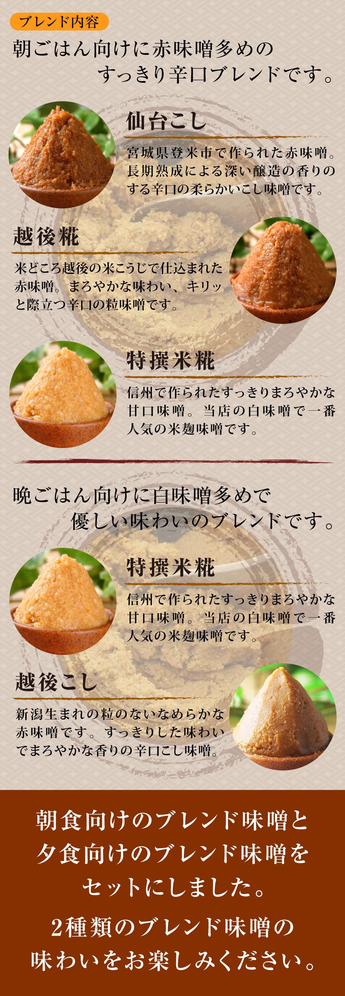 朝食向け&夕食向けブレンド味噌セット Lサイズ(味噌2種)|送料込み |