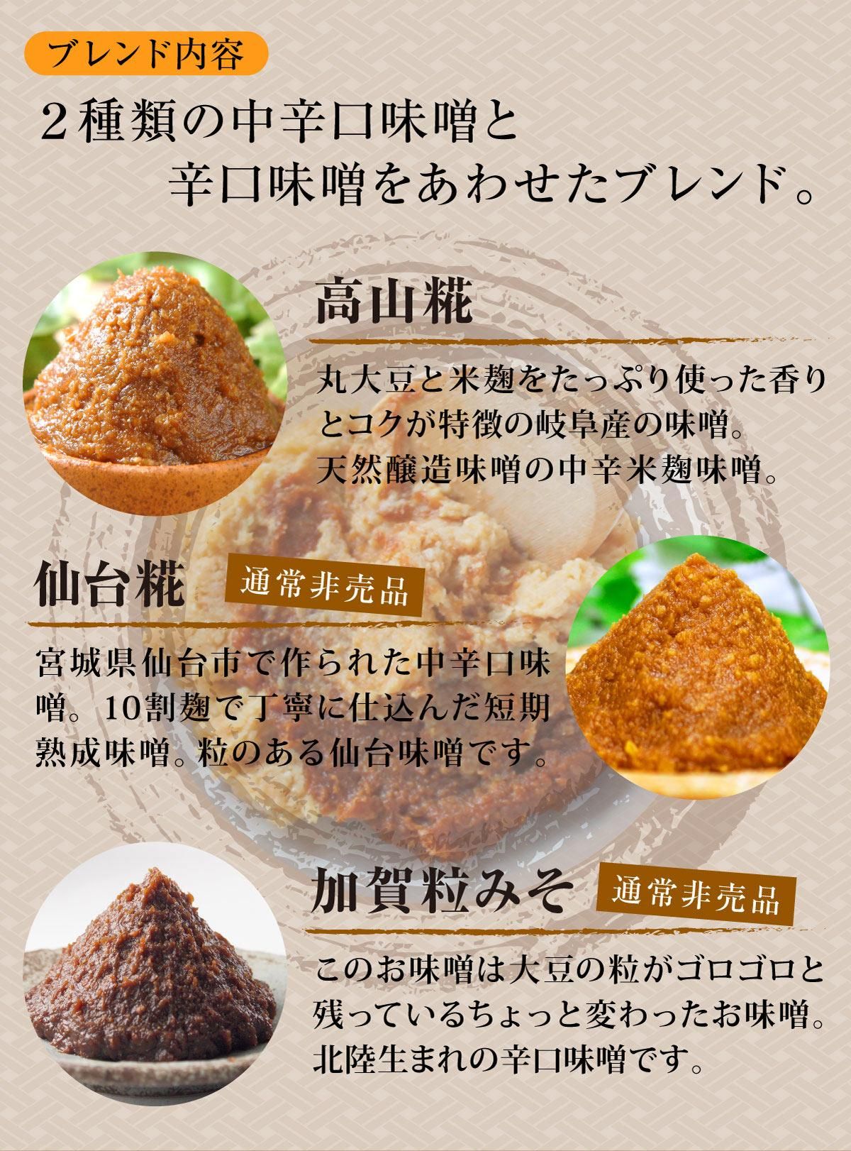 粗合わせ味噌 粒あり(辛口)500g(3種の味噌あわせ) |